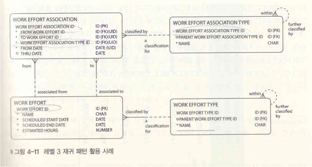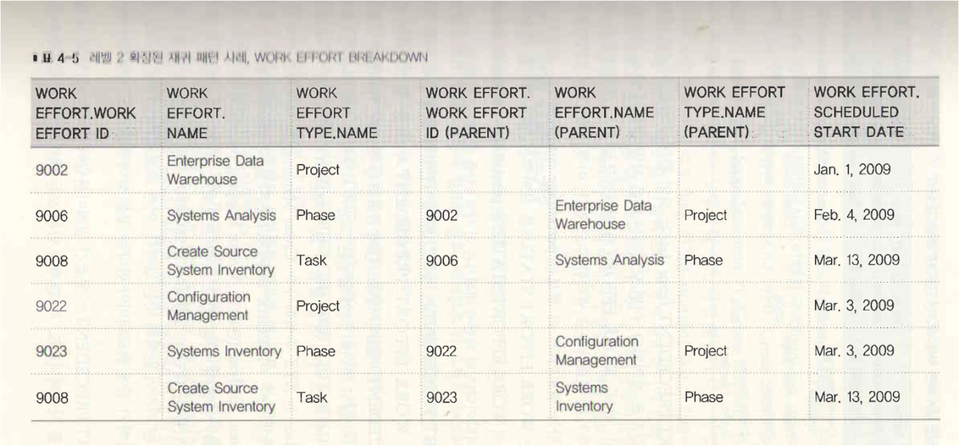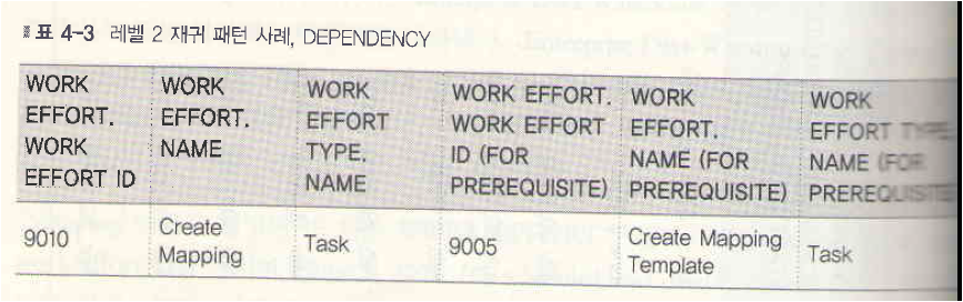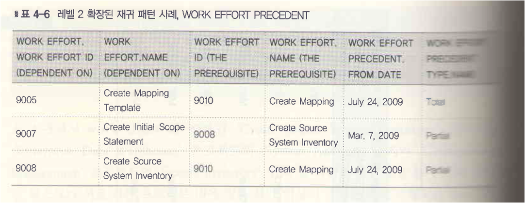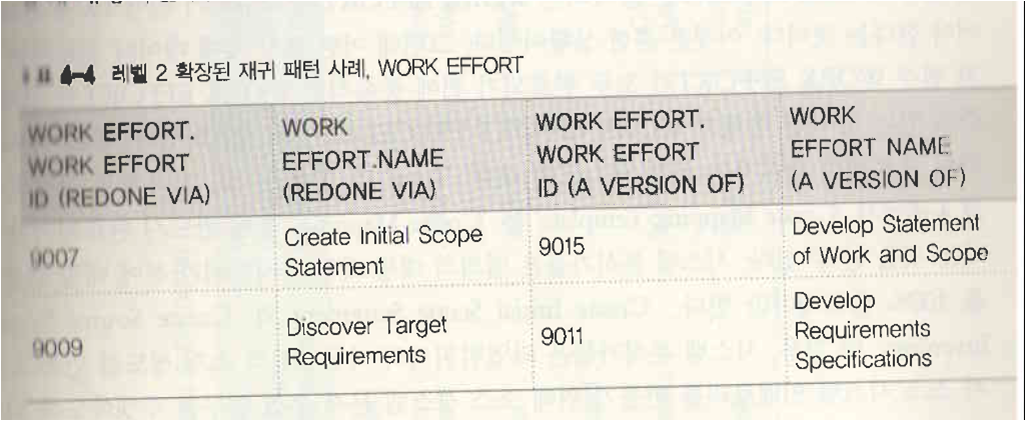 표4-4 확장된 재귀패턴 사례, WORK EFFORT