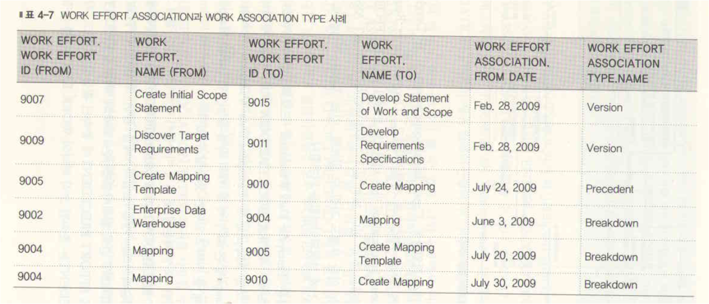 표 4-7 WORK EFFORT ASSOCIATION WORK ASSOCIATION TYPE사례