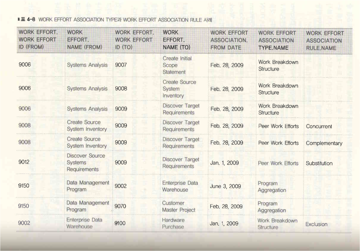 표4-8 WORK EFFORT ASSOCIATION WORK EFFORT ASSOCIATION RULE 사례