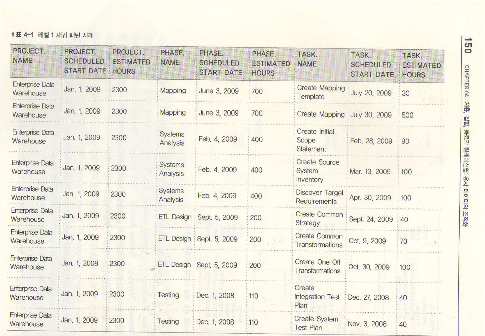 표4-5 레벨2 확장된 재귀패턴 사례, WORK EFFORT BREAKDOWN