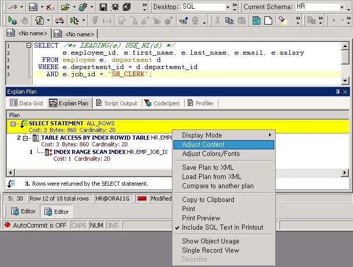 문제는 이처럼 중요한 정보를 DBMS_XPLAN 패키지를 사용하지 않고 'TOAD나 오렌지에서 어떻게 볼수 있냐' 이다.