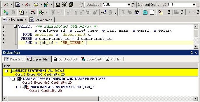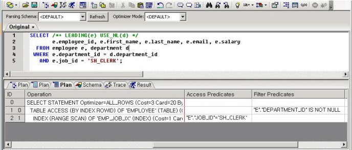 SELECT /*+ LEADING(e) USE_NL(d) */