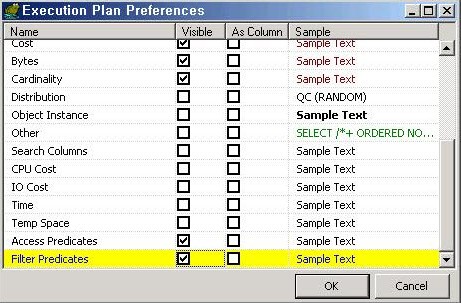 오렌지나 TOAD에서 Predicate Information을 참조하는 방법