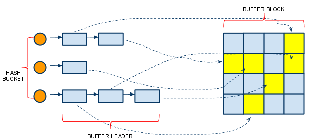 → 성공 하면 읽고, 실패하면 디스크로부터 읽은후 해시체인에 연결(다른사용자들을 위해서) 후 읽기진행버퍼 헤더만 체인에 연결, 실제 데이터 값이 필요해지면 버퍼해더에 있는 포인터를 이용해 다시 버퍼 블록을 찾아가는 구조