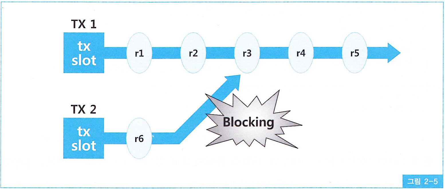 그러나, 변경 중인 레코드를 동시에 변경하려는 트랜잭션에 대해서는 블로킹작업이 필요하다. (액세스 직렬화)