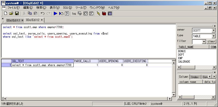 같은 SQL을 3번실행시켜보면, 3번째(Parse_Calls=3) 비로소 ?該커서가 공유커서를 참조(USERS_OPENING=1)하게 되는것을 볼 수 있다.