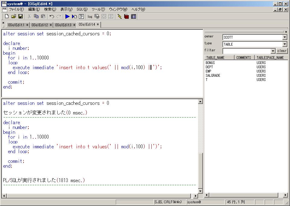 insert문이 10000번 수행되는 동안, parse count와 함께 session cursor cache hits도 10000번가까이 증가했음을 알수 있다.