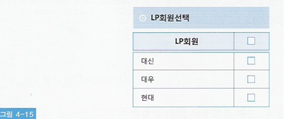 LP회원을 선택하는 그림 4-15 팝업 창에서 사용자가 선택한 LP회원 목록을 선택하고자 할 때,