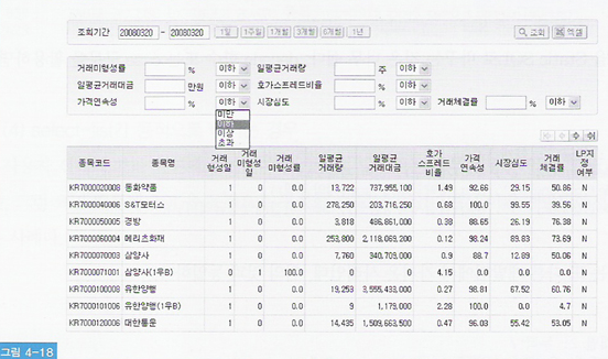 and 호가스프레드비율 between :min4 and :max4