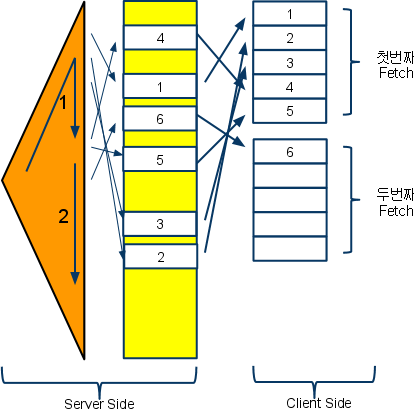 • 쿼리 결과집합을 전송할때  전체 데이터를 연속적으로 처리하지 않고 사용자의 Fetch Call에 따라 일정양씩 나누어서 전송하는 것