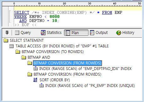 - 비트맵 인덱스가 전혀 없을 시 "INDEX_COMBINE" 힌트 사용으로 비트맵 엑세스 가능