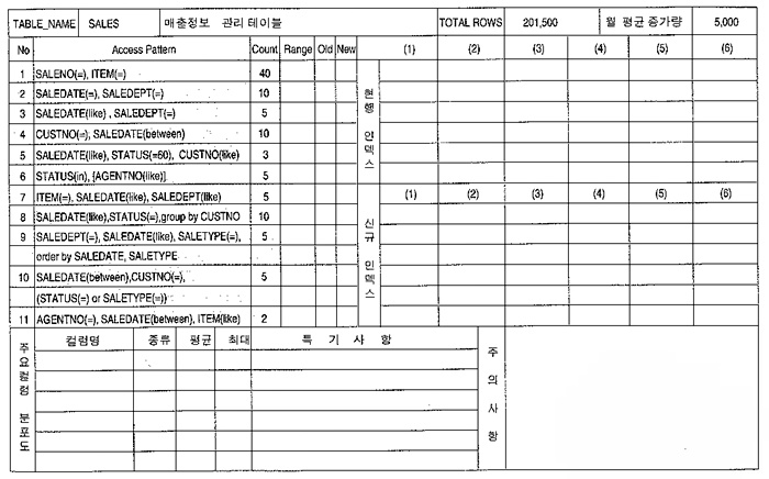 ▼ 위의 제시 방법으로 액세스 형태 작성 (Count : 액세스 형태가 사용된 SQL 수, 가중치 활용으로 백분율로 표시하면 좋음)