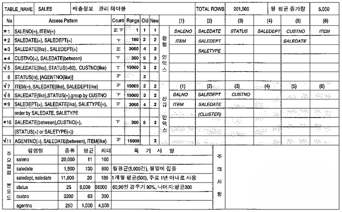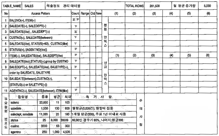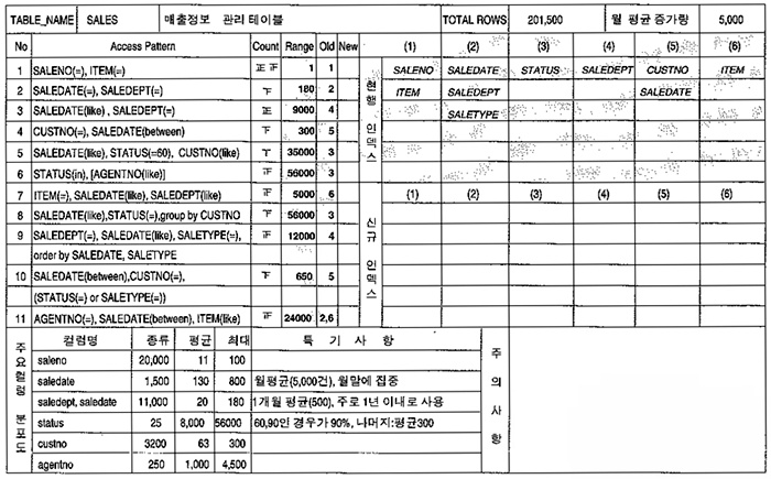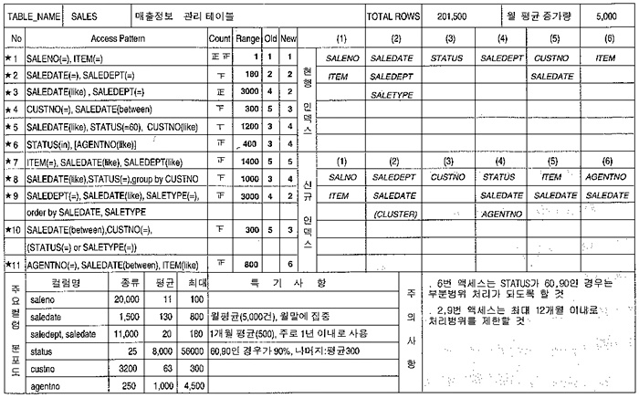 - 1번 액세스 형태 : 모두(SALENO, ITEM) '=' 사용 ☞ 분포도나 정렬순서 고려