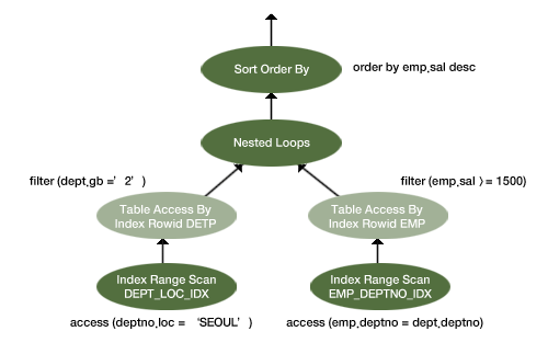 SELECT /*+ LEADING(E) USE_HASH(D) */ D.DEPTNO, D.DNAME, E.EMPNO, E.ENAME