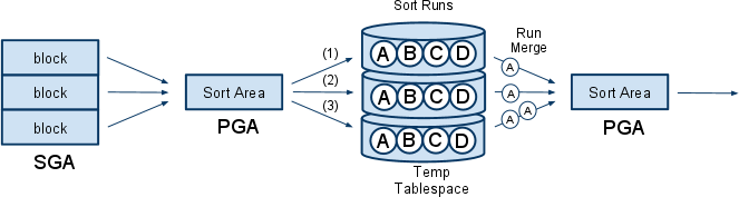 - Sort Run: Sort Area가 찰때마다 정렬된 중간 집합을 Temp Tablespace의 Temp 세그먼트에 임시저장