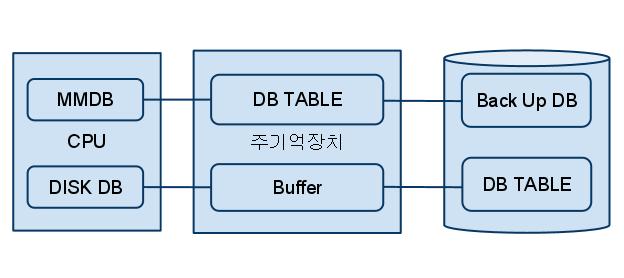 - 데이터를 모두 메모리에 로드해 놓고 메모리를 통해서만 I/O를 수행하는 DB