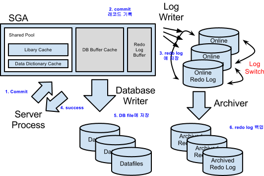 - LGWR 프로세스에 의해 Redo 로그 버퍼에 있는 내용을 Redo 로그 파일에 기록