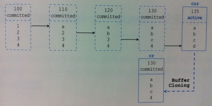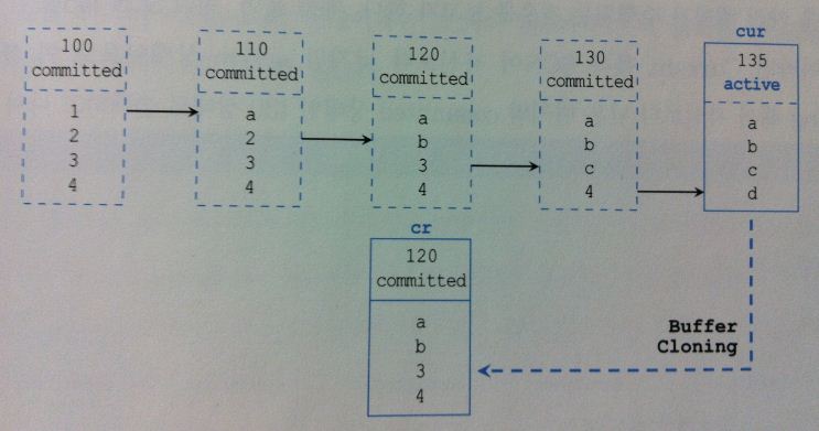 - Current 블록은 디스크로부터 읽혀진 후 사용자의 갱신사항이 반영된 최종 상태의 원본 블록이며 CR블록은 그 복사본일 뿐이다.