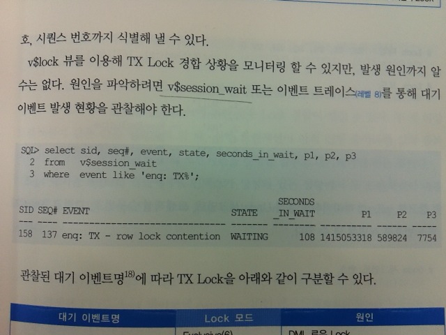 - TX Lock의 우너인을 파악하려면 V$SESSION_WAIT 또는 이벤트 트레이스를 통해