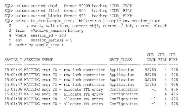 Configuration으로 인한 대기 이벤트는 v$active_session_history로 조회가 되지만 함께 출력되는 오브젝트에