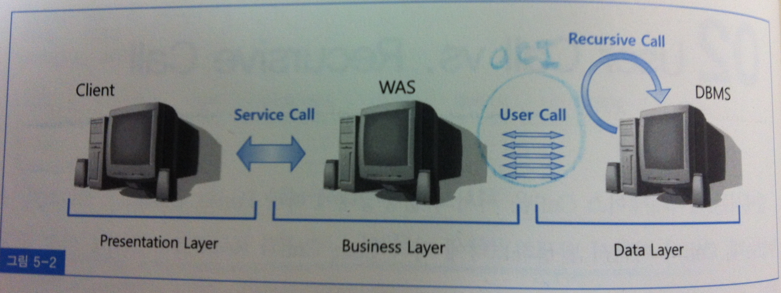 그림2에서 보면 DBMS 입장에서의 사용자는 WAS이기 때문에 User Call이 클라이언트가 아닌 WAS에서 발생하게 됩니다.