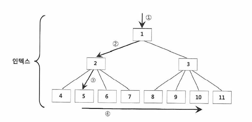 - 1,2,3,4 순으로 Index Range Scan 진행