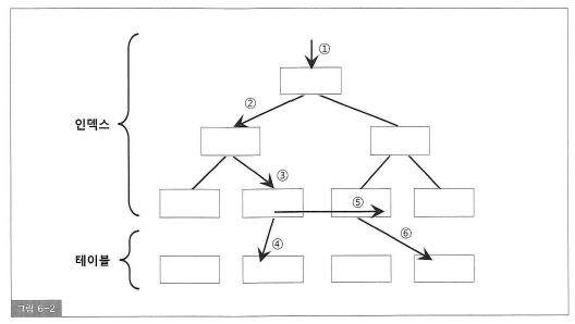 - 한 건을 읽기 위해 한 블록씩 접근(1,2,3,4,6번)