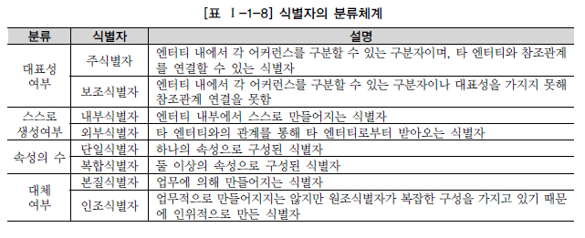 (식별자-논리 데이터 모델링 / 키-물리 데이터 모델링)