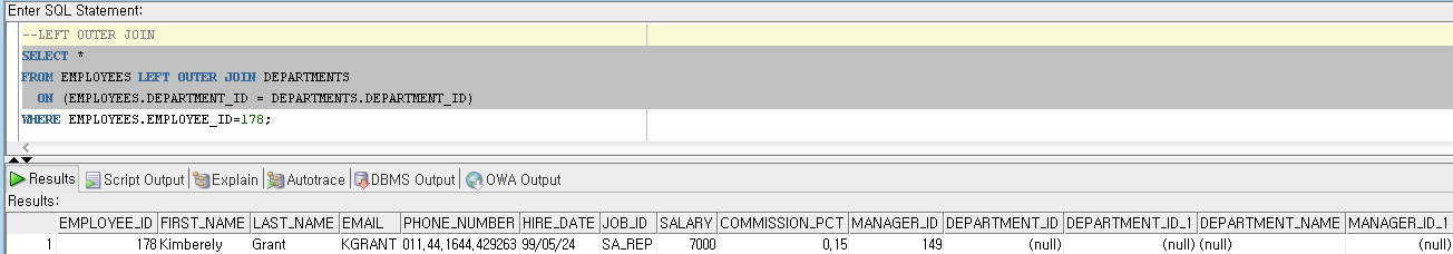 가.LEFT OUTER JOIN (OUTER 생략 가능)