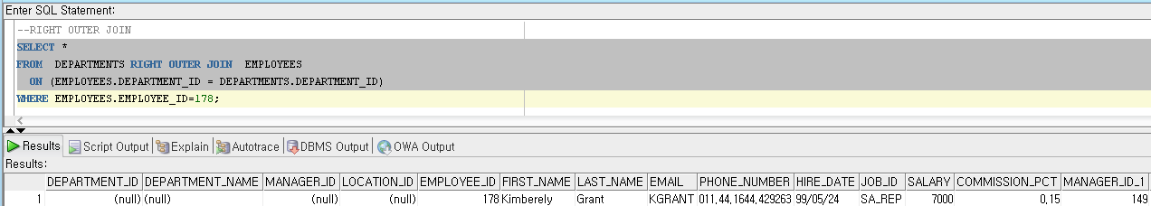 나.RIGHT OUTER JOIN (OUTER 생략가능)