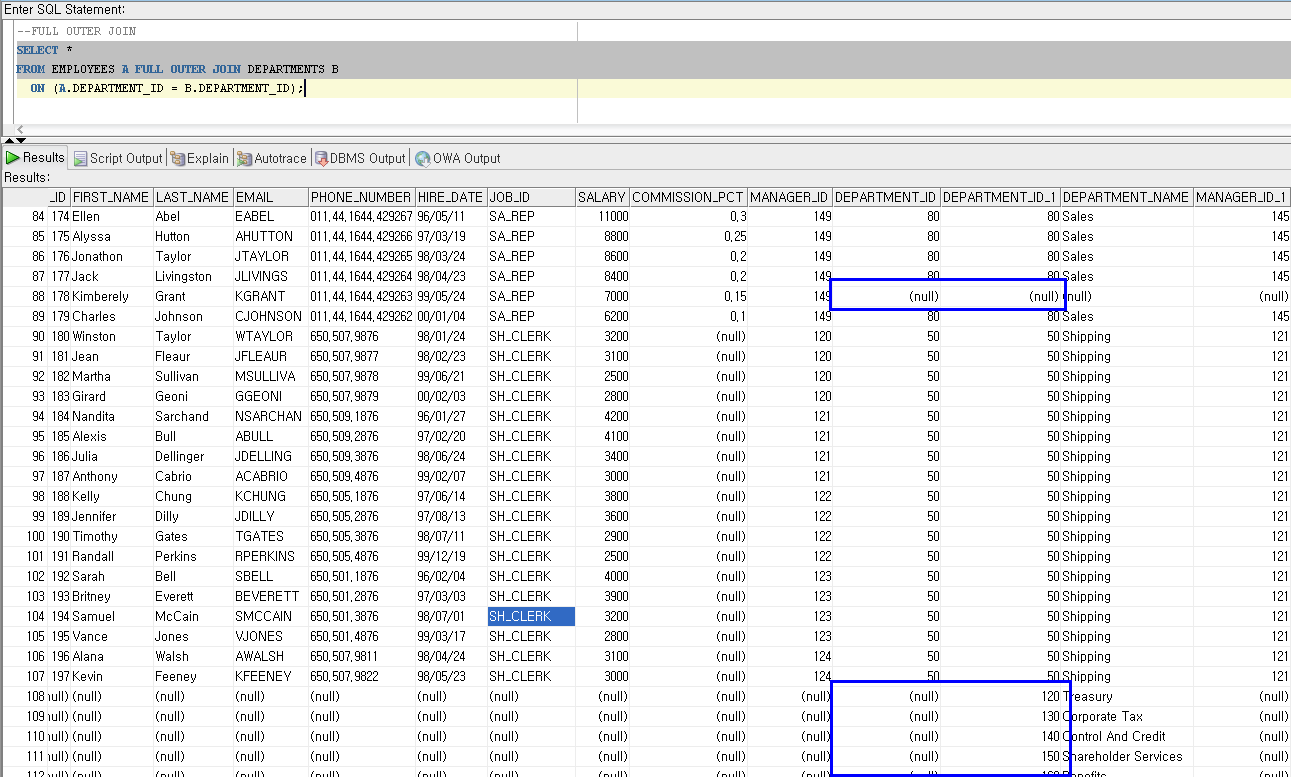 FROM EMPLOYEES A FULL OUTER JOIN DEPARTMENTS B