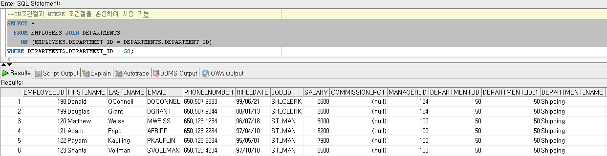 ON (EMPLOYEES.DEPARTMENT_ID = DEPARTMENTS.DEPARTMENT_ID);