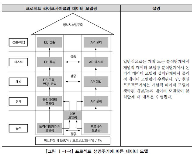 - 업무크기에 따라 논리적 데이터 모델과 물리적 데이터 모델이 분석, 설계단계 양쪽에서 수행
