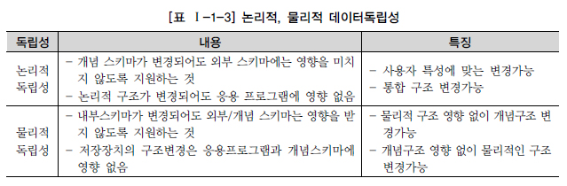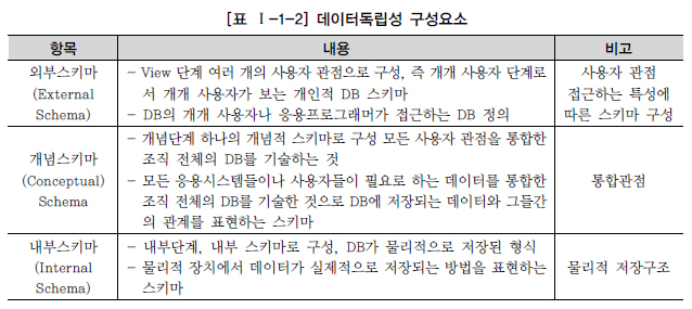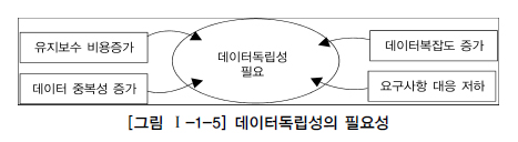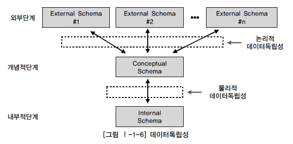 - 데이터독립성은 지속적으로 증가하는 유지보수 비용을 절약