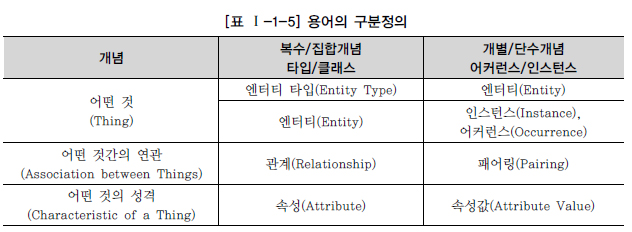 ※ 교재에서의 용어 구분 사용 ☞ Thing : 복수 - 엔터티, 단수 - 인스턴스 라 표기
